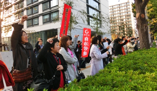 「暮らし・いのち・雇用を守れ」「かがやけ憲法!」「消費税増税中止」「秘密保護法反対!」と、11月14日に中央行動が行われ、午前中は総務省前行動、昼から11・14総決起集会、国会請願デモ、国会議員要請行動を行い、安倍政権に対する怒りの声を霞が関周辺に響かせました。
