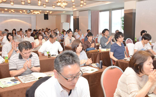 ▲全国から150人を超える仲間が講演を熱心に聴く