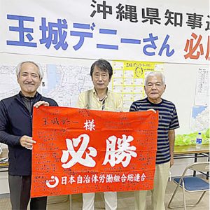 自治労連は、沖縄県知事選挙を平和憲法と地方自治を守る重要な選挙と位置づけて推薦決定し、全国からの支援を呼びかけていました。