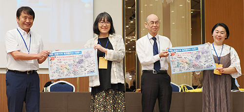 ▲戦後・被爆80年の節目に、国民平和大行進でつないだリレー旗13枚が集まり、そのレプリカが広島と長崎の代表に贈られました