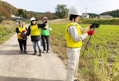全体で3グループに分かれて、輪島市内、珠洲市内で活動を行いました。自治労連のメンバーは、農業用水路の泥上げ作業と獣害防止用電気柵の撤去作業を行いました。