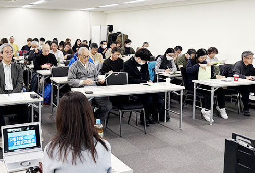 「災害対策全国交流集会2025」が金沢市内で11月9日に開催され、前日の支援ボランティア参加者を中心に全国からオンラインを含め135人が参加しました。集会の開会にあたってのあいさつで秋山正臣災対連代表世話人(全労連議長)は、「行政のスリム化として、非正規化やデジタル化がすすめられているが、それでは住民・地域を守れない」と公共の重要性にふれました。