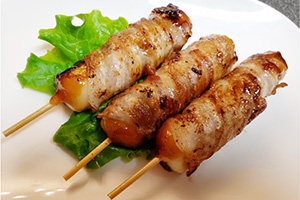 ②黒コショウが付いている方を内側にして、みたらし団子に巻き付ける。