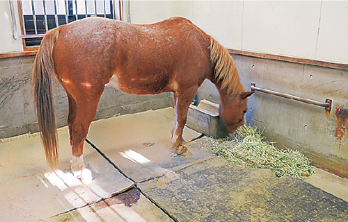 ポニーの大きさによって1日2~3回、干し草や野菜などを与えます。食欲の変化は健康のサインになるため、小さな変化も見逃せません。