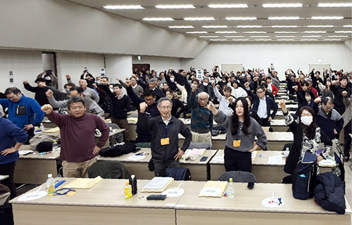 会場全体で26国民春闘の勝利と総選挙を通じた職員と住民要求の実現への決意を固め合いました。
