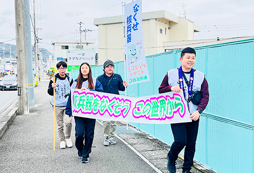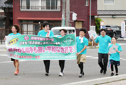 岩手ではタスキをつないで平和の願いを広げる反核平和マラソン、秋田ではバイクで核兵器廃絶と平和を訴えながら自治体要請する反核ライダー、四国ブロックでは各札所を歩きながら平和のアピールを行う反核へんろなど、各地で青年たちが平和への願いを広げています。