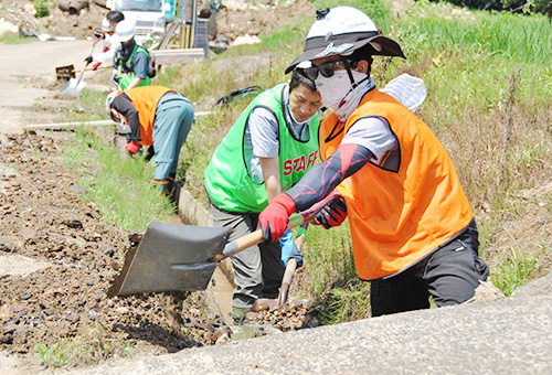 能登半島地震でも、のべ214人の組合員が、山間部の小規模集落などで災害ゴミの搬出、清掃、同年に襲った豪雨被害の側溝の泥上げなどボランティア活動に参加しました。また、全国から集められた義援金も被災自治体へ届けました。