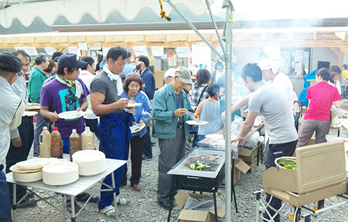 ▲炊き出しで被災者を励ます愛知の仲間(東日本大震災)