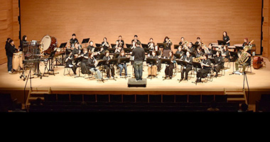 ▲熊取吹奏楽団の定期演奏会。舞台右奥でパーカッションを演奏する牧野谷さん