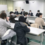 蒲郡市職は、ひと足早く2月18日に来年度の新規採用予定者への組合説明会を開催しました。市の事前研修会の昼休みを利用し、採用予定者はお弁当を食べながら、先輩組合員からの加入の呼びかけに耳を傾けました。
