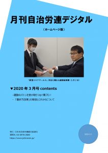 「月刊自治労連デジタルHP」(2020年3月号) 2020年3月号contents 「月刊自治労連デジタルHP」(2020年3月)(PDF) 運動のバトンを受け取りつなぐ青プロ! 「働き方改革」の背景とこれからについて