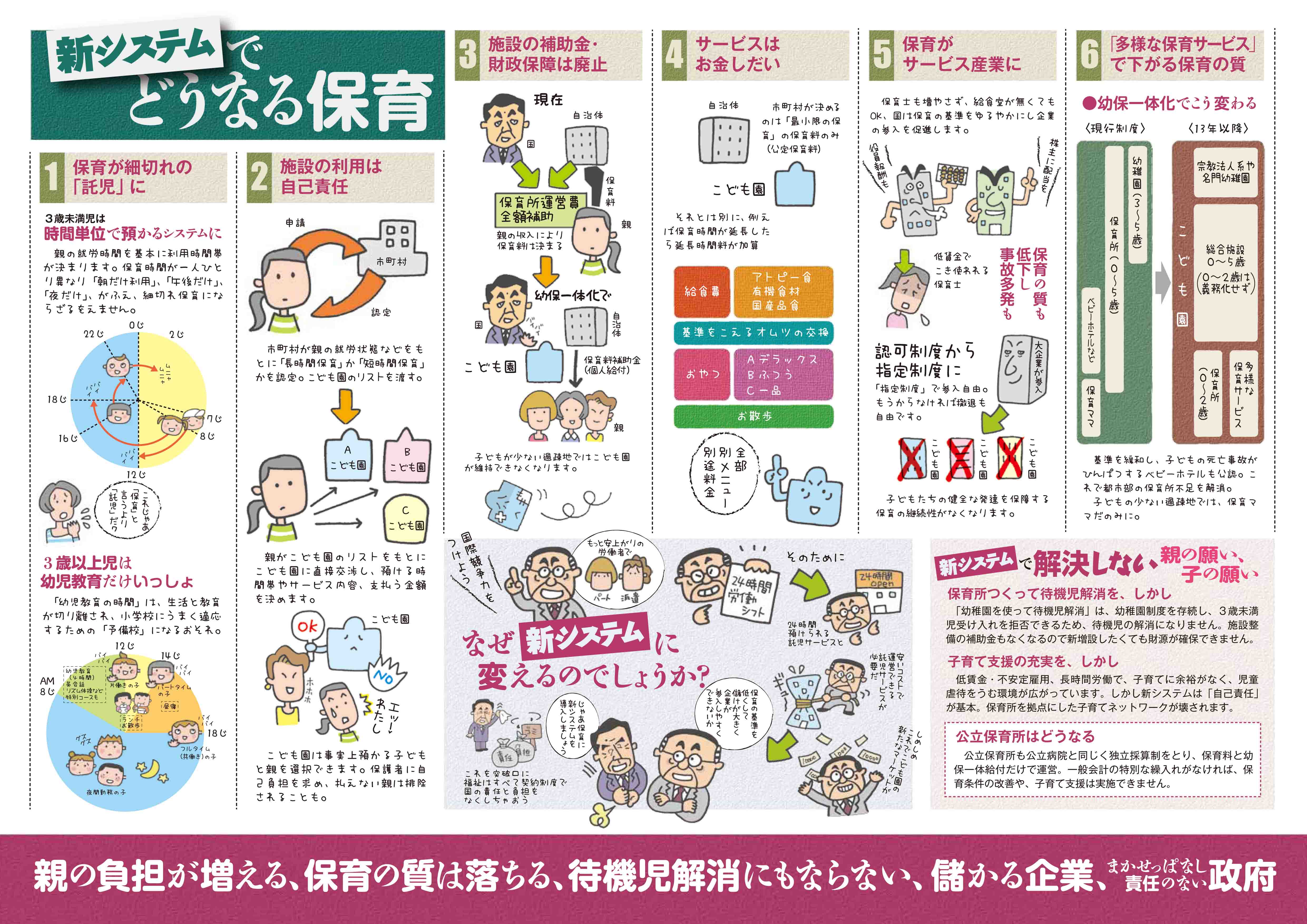 保育ビラ-オモテ02  政府は、「子ども子育て新システム」を決定し、法律案を国会に提出しようとしています。